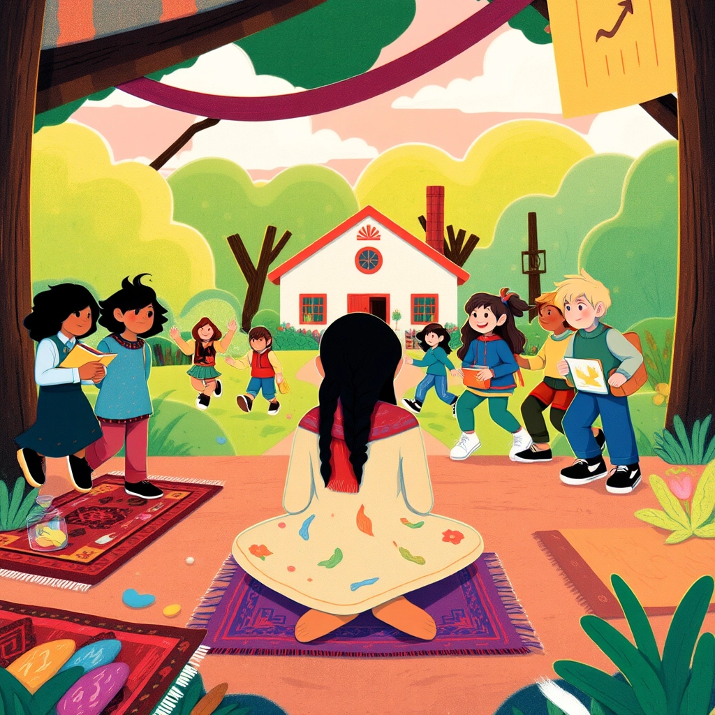 In a small village surrounded by hills, there lived a little girl named [Lina](HZSHS75L) who dreamt of going to school. She helped her parents sell handmade rugs at the busy market every day.