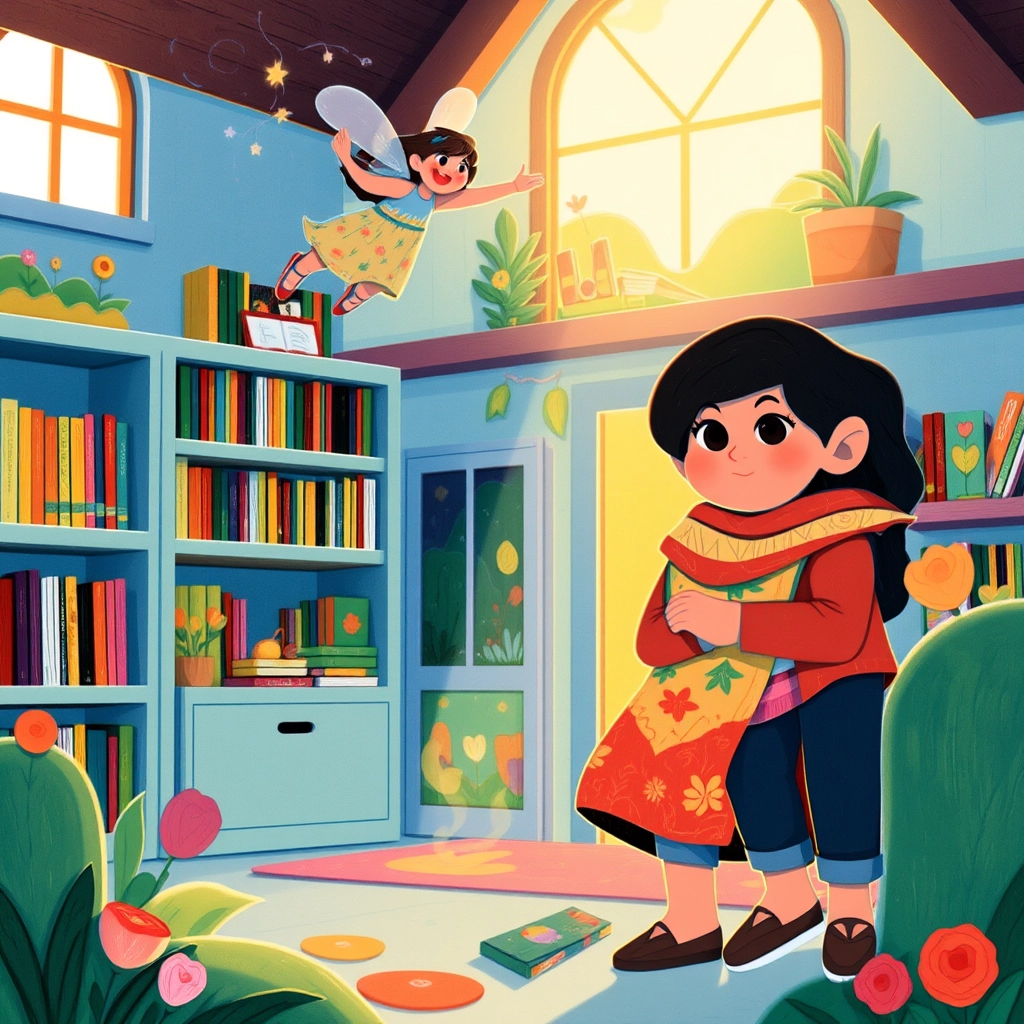 With a wave of her staff, the fairy created a cozy home filled with books and a classroom where [Lina](HZSHS75L) could study.