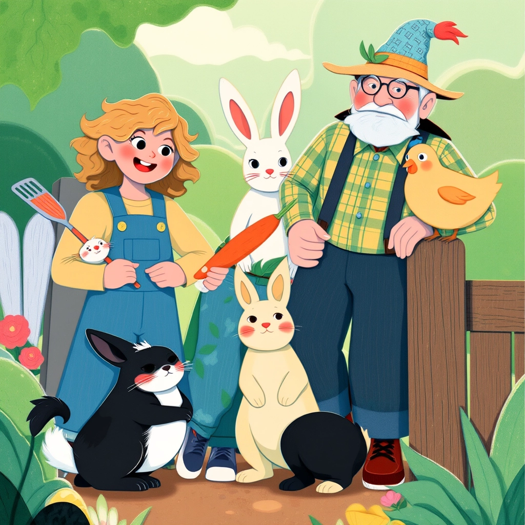 From that day forward, the rabbits visited [Mr. Potter](LVPF3H43)’s garden as helpers, not thieves. And [Brooklyn](3S76RKHW), [Cookie](C3R7ZCPZ), and [Clucky](JYCHJD3R)? They were ready for their next big adventure!