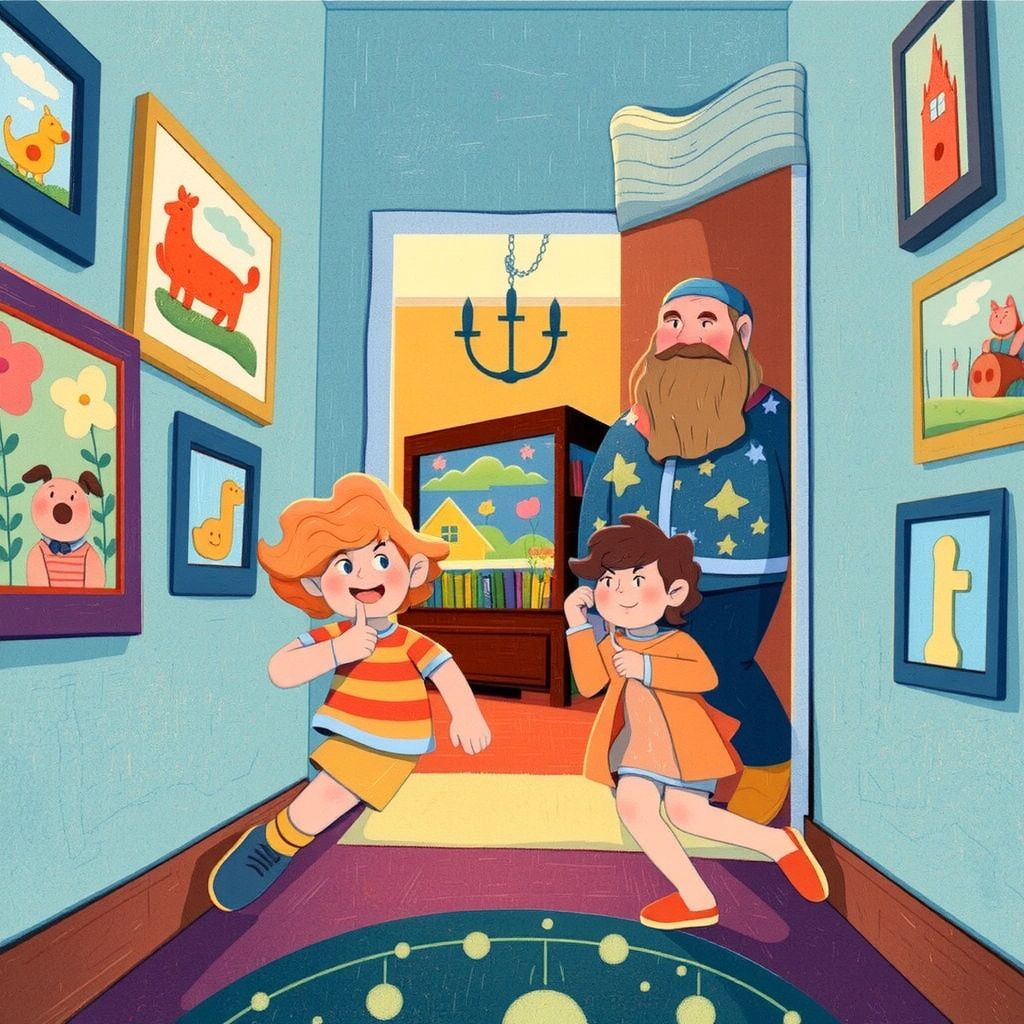 Carefully, they tiptoed towards their father's bedroom, their hearts racing with excitement.