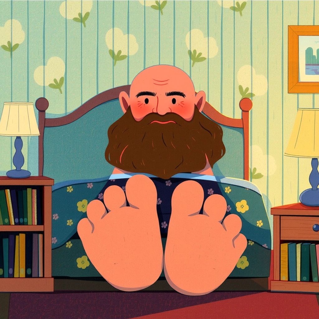 They peeked inside and saw [Mr. Gigglebeard](VD7NKPR7) sleeping soundly with his feet poking out from under the covers.