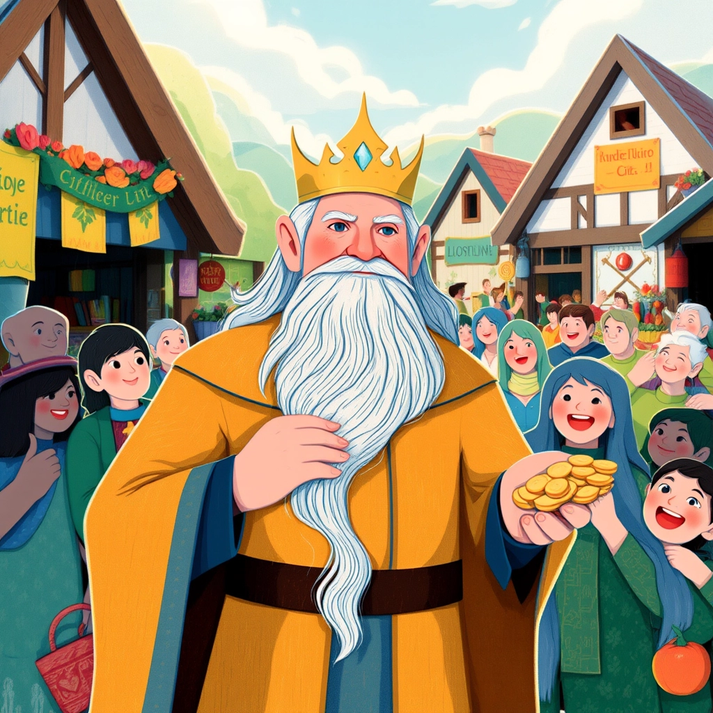 Once upon a time, in a prosperous kingdom called Wajao, lived [King Eldric](YRP7BMW6), a kind and generous ruler. He was beloved by his people for always sharing his wealth and ensuring that everyone had enough.