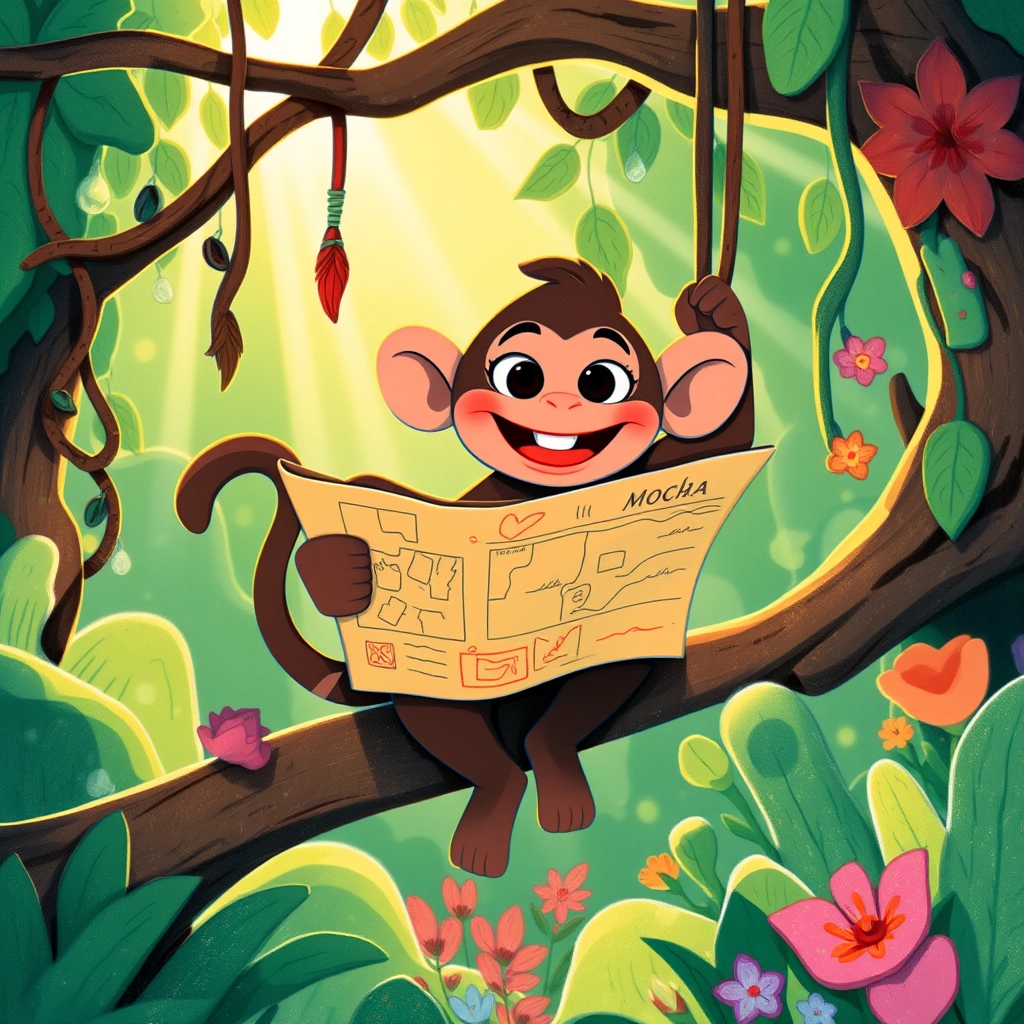 [Mocha](SJT9X35S) the monkey was full of energy and had discovered a mysterious map while swinging through the trees.
