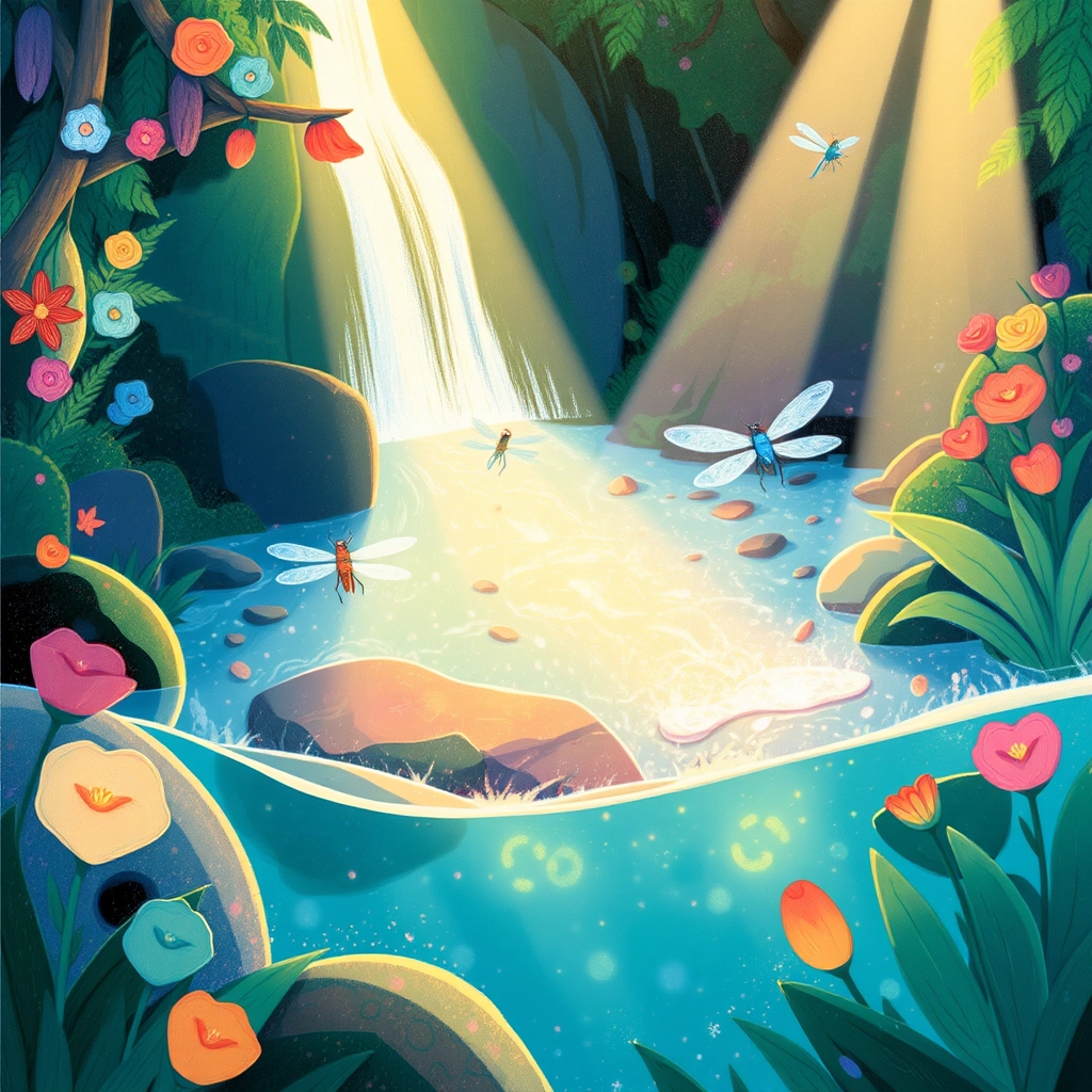 Behind the Banyan Tree, they found a sparkling hidden river with glowing stones lining the bottom.