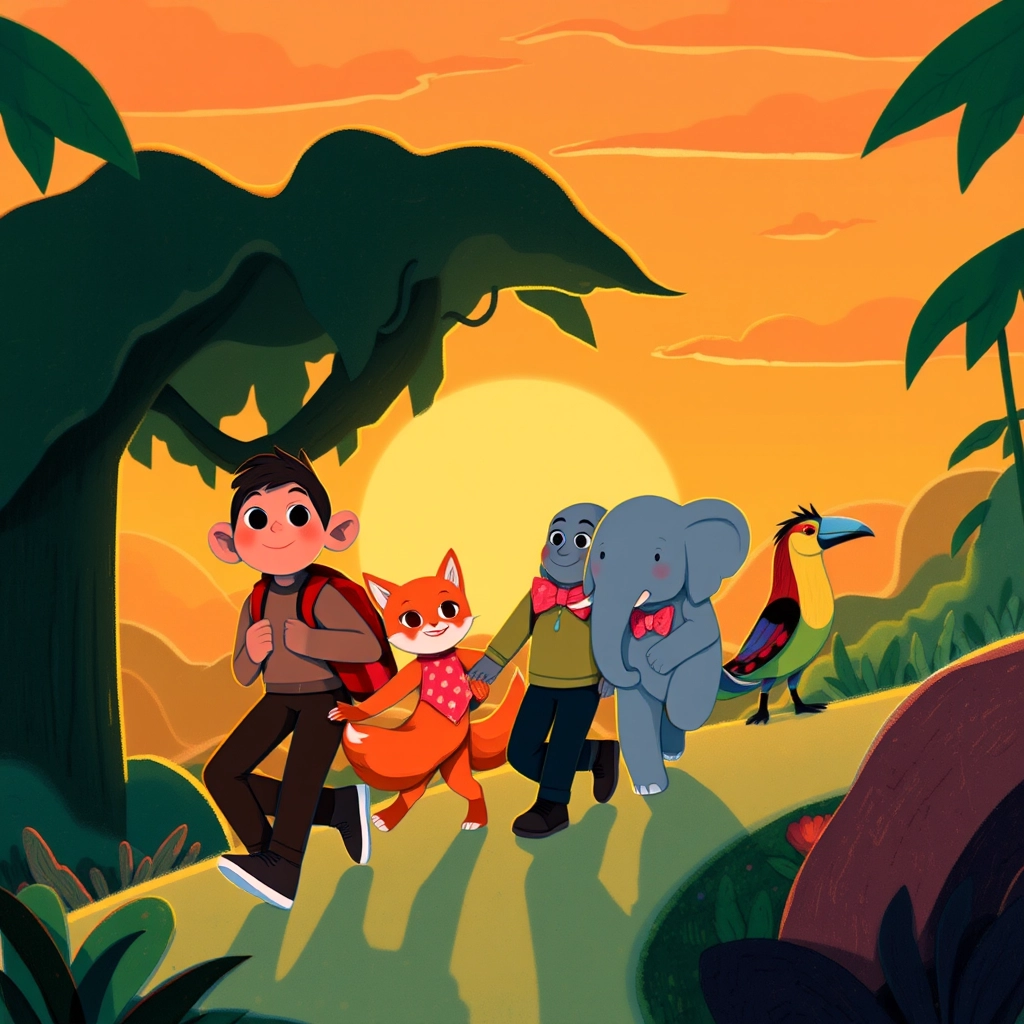 From that day on, [Milo](KF463JNG), [Flynn](944MZPCJ), [Ellie](T763QQCJ), and [Percy](KQWRH93G) explored the jungle often, always finding fun, learning lessons, and staying the best of friends.