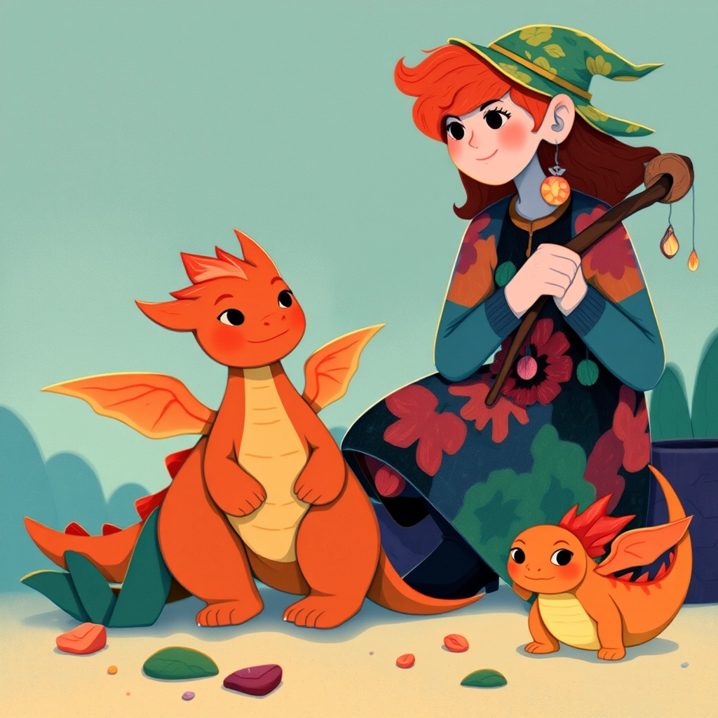 Not long after, a baby dragon named [Ember](NRP4XRC4) came to [Lila](6FRRQGWD), sniffling sadly. 'I can’t breathe fire like my brothers and sisters,' she said. [Lila](6FRRQGWD) chuckled and said, 'Oh, little one, let’s fix that!' She led [Ember](NRP4XRC4) to a patch of spicy, fiery-looking flowers growing near her home.