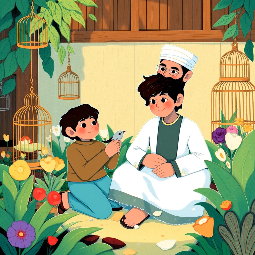 There was a little boy named [Abu Umayr](6V2K9XS6) who loved his pet bird. When the bird died, [Muhammad](PV9YDCLT) (peace be upon him) sat beside him and asked gently, ‘O [Abu Umayr](6V2K9XS6), what happened to your little bird?’