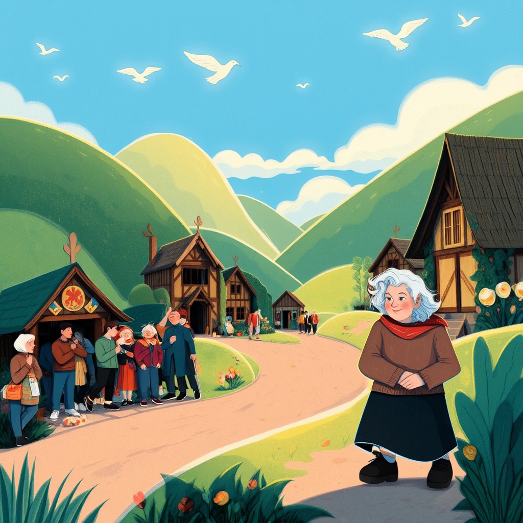 Once upon a time, in a small peaceful village surrounded by rolling green hills, lived an old woman who was known for keeping to herself. The villagers often whispered about her, calling her bad names and thinking she was a witch because of her strange looks and quiet life.