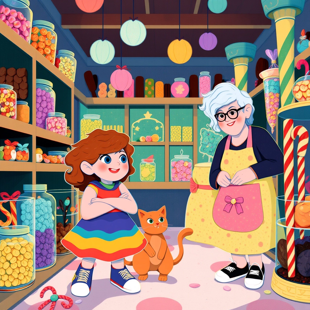 [Ellie](95FP7FZV)’s favorite place to visit was [Mrs. Puffleberry](VVYHJ2X6)’s magical candy shop, where the walls were made of fudge and the floors shimmered like sugar crystals.