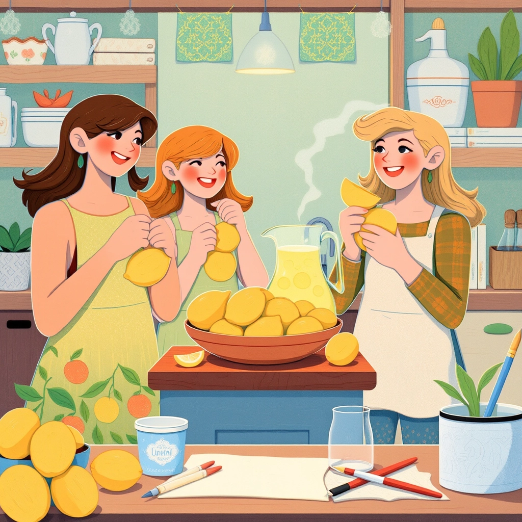 The sisters worked together to plan everything. They washed lemons, made the lemonade, and painted a colorful sign.