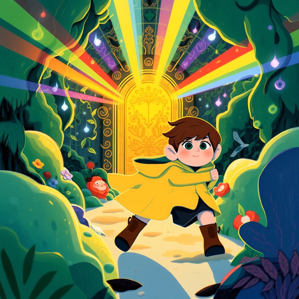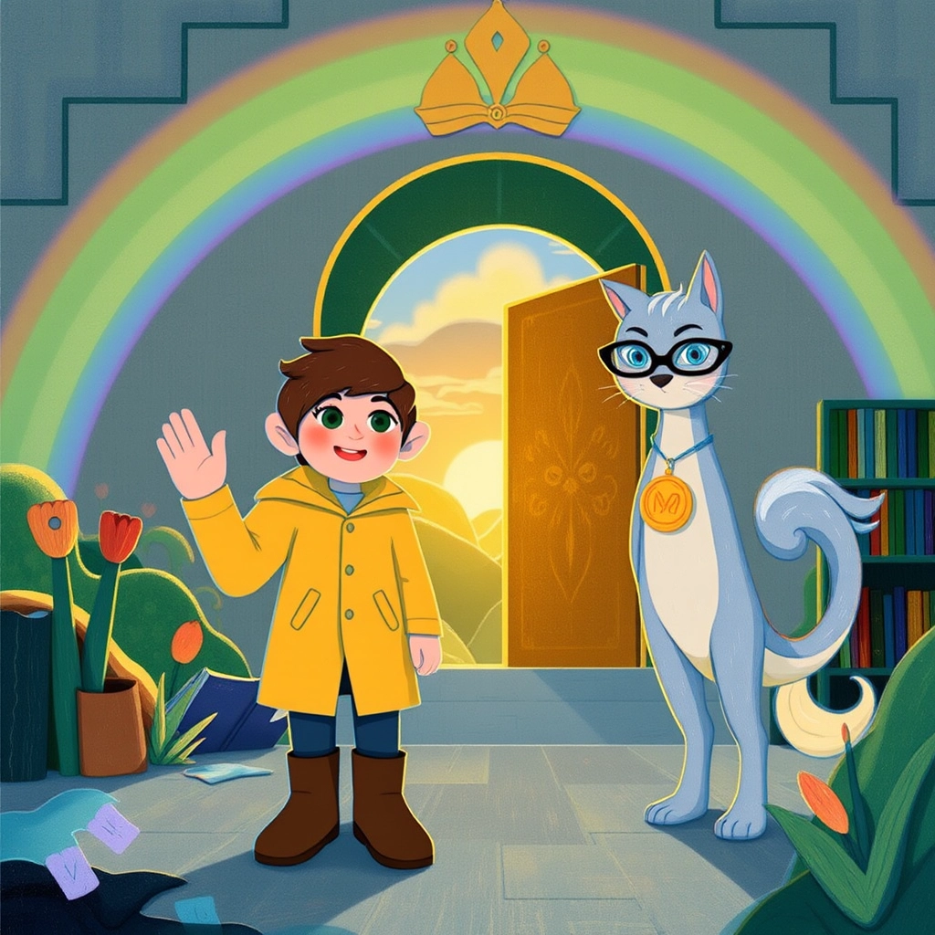 With excitement bubbling, [Jamie](B2G4CP55) ran toward the rainbow, feet brushing against soft grass and wildflowers blooming as if to cheer them on. The rainbow seemed to get closer and closer until [Jamie](B2G4CP55) found a golden door glowing with light.