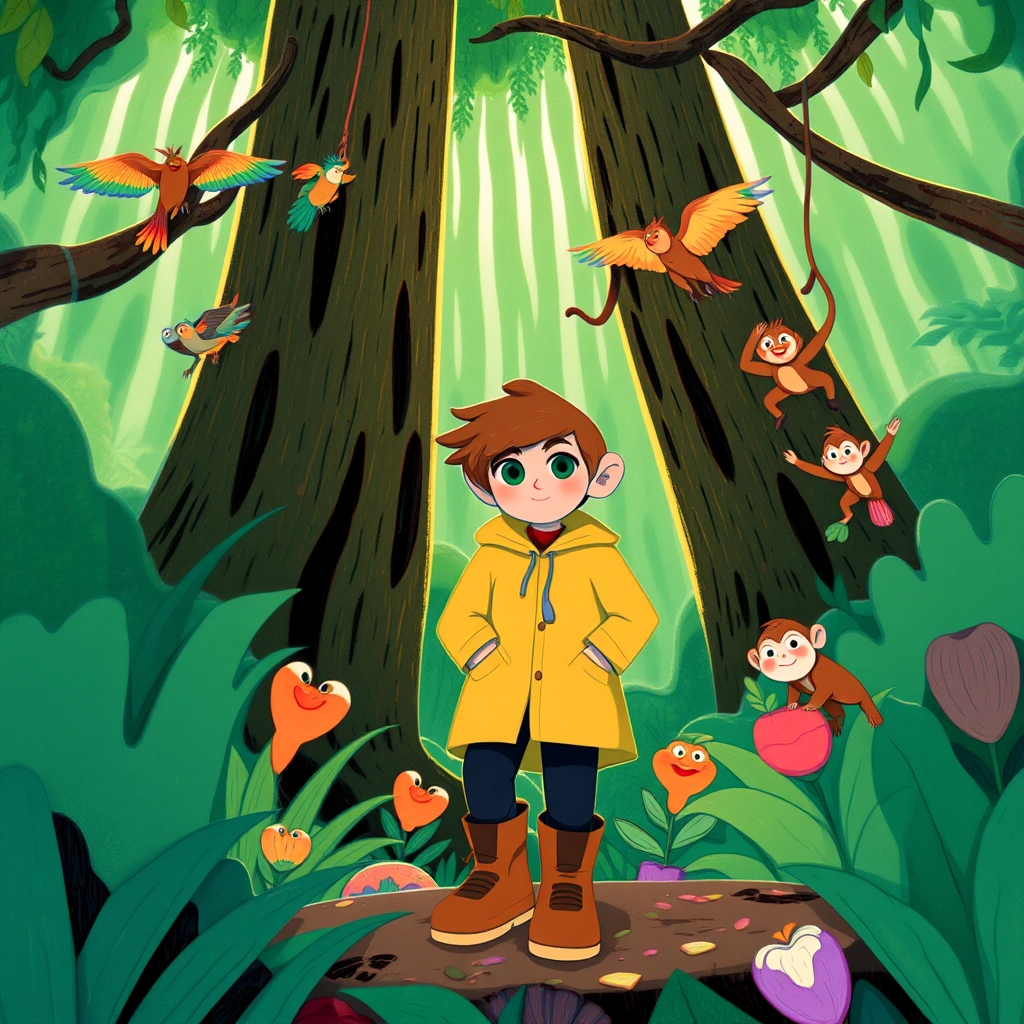 [Jamie](B2G4CP55) opened a glowing green book titled ‘The Jungle of Secrets.’ In a flash, [Jamie](B2G4CP55) stood in a deep jungle surrounded by towering trees, singing birds, and giggling monkeys jumping between vines!
