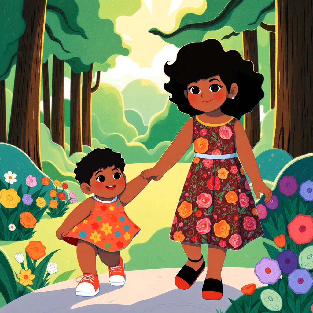 [Arabella](KGBR6QFF) was an 8-year-old girl with beautiful curly hair and large brown eyes. She loved taking care of her baby sister, [Amara](496L5H4G), who was just one year old and always full of smiles and energy. One sunny afternoon, [Arabella](KGBR6QFF) decided to take [Amara](496L5H4G) for a walk in the park.