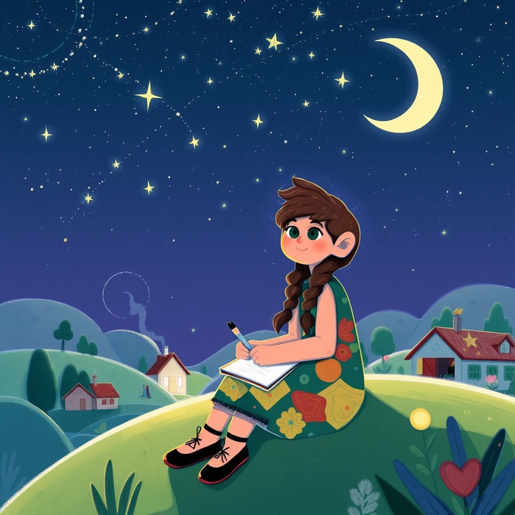 Though [Sparky](73RS4BLY) eventually returned to Luminaria, [Mia](T42JPM4J) held his lessons close to her heart, spreading light and happiness. She often glanced at the stars, knowing her magical journey began among them.