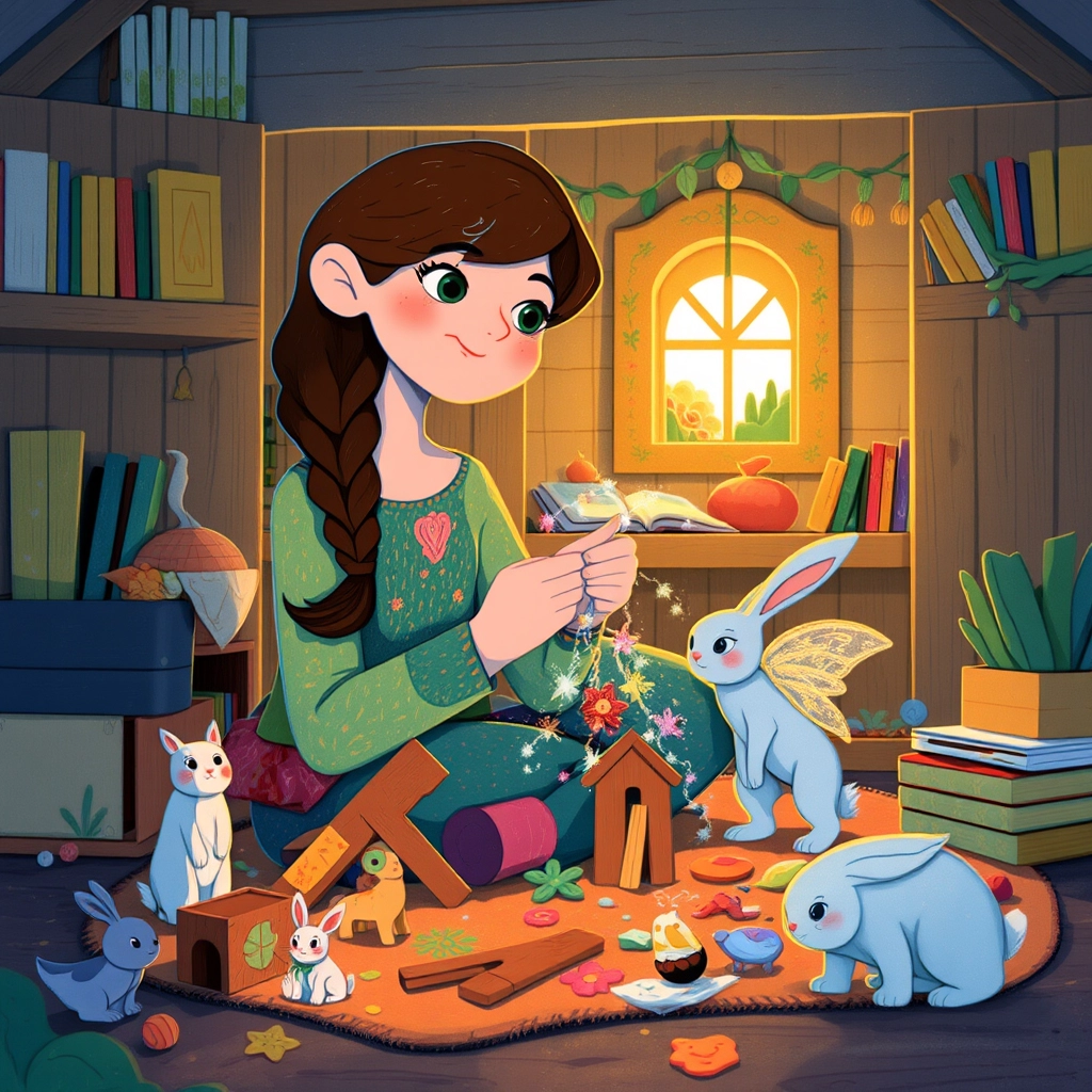 From that day, [Mia](T42JPM4J) began exploring her talents. She realized she loved crafting small toys and storytelling—and together, she and [Sparky](73RS4BLY) made enchanting toys that told magical tales!