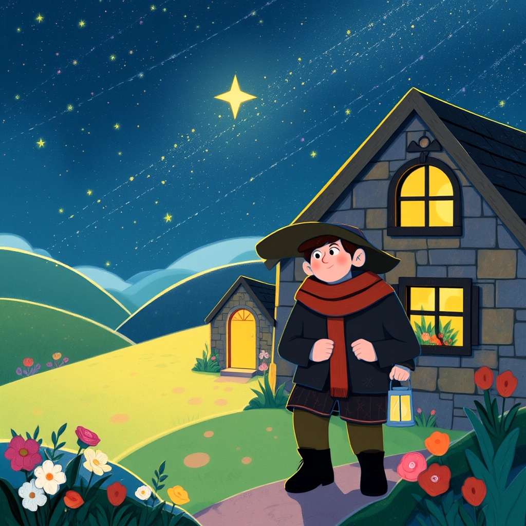The traveler looked up at the little star, smiling and whispering a heartfelt thank you for helping him find his way home.