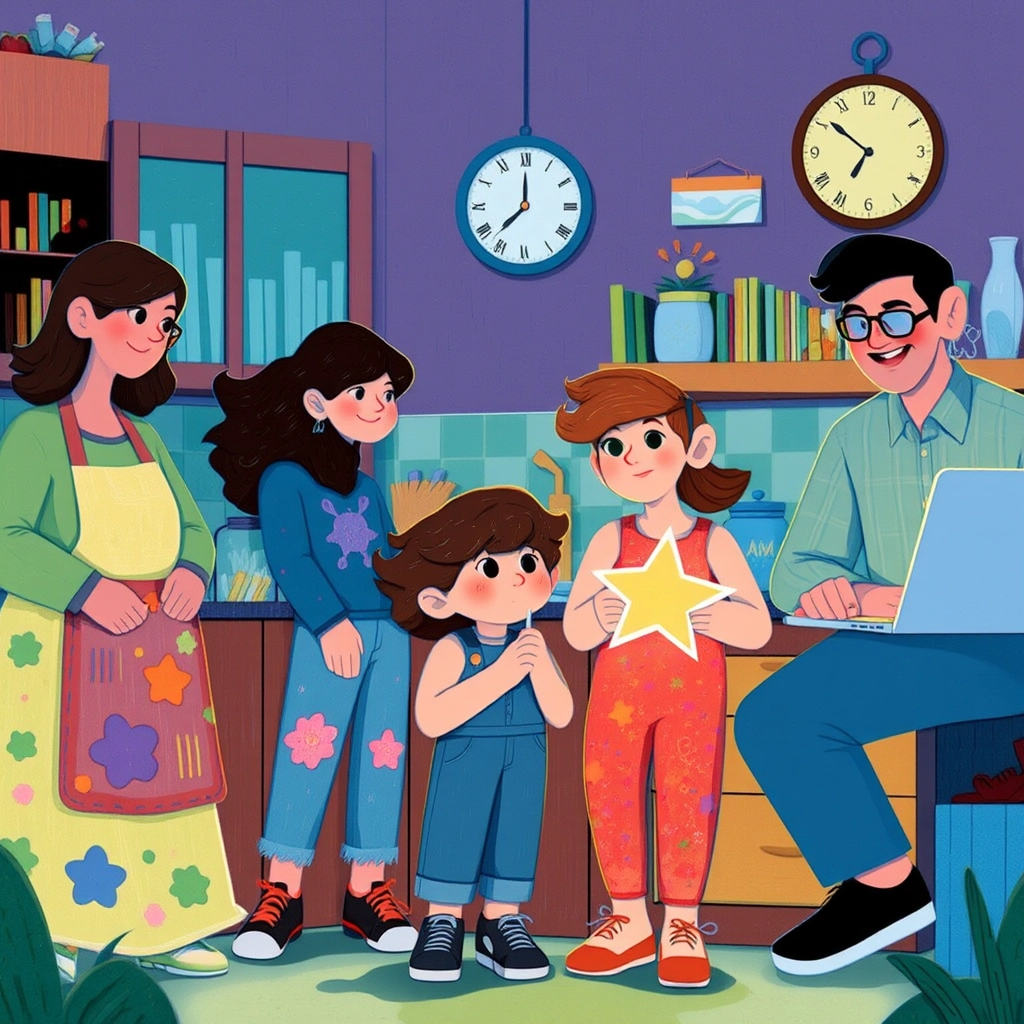 One day, [Mia](RRTQ3WVH) excitedly explained to her parents how [Twinkle](PJGHHCCM) had inspired her, and showed them her drawings. Her parents finally slowed down to listen, their eyes wide with surprise and love.