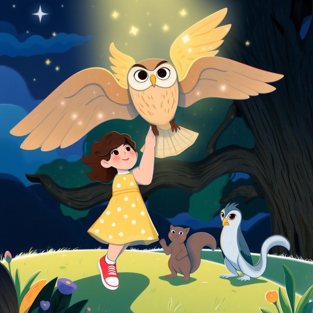 [Mia](L2QL344G) smiled and ran back into the house, feeling warm and happy. That night, she tucked [Mr. Hoots](JCKYM4X3) next to her and fell asleep quickly, dreaming of her new magical friends and all the adventures they might still have together!