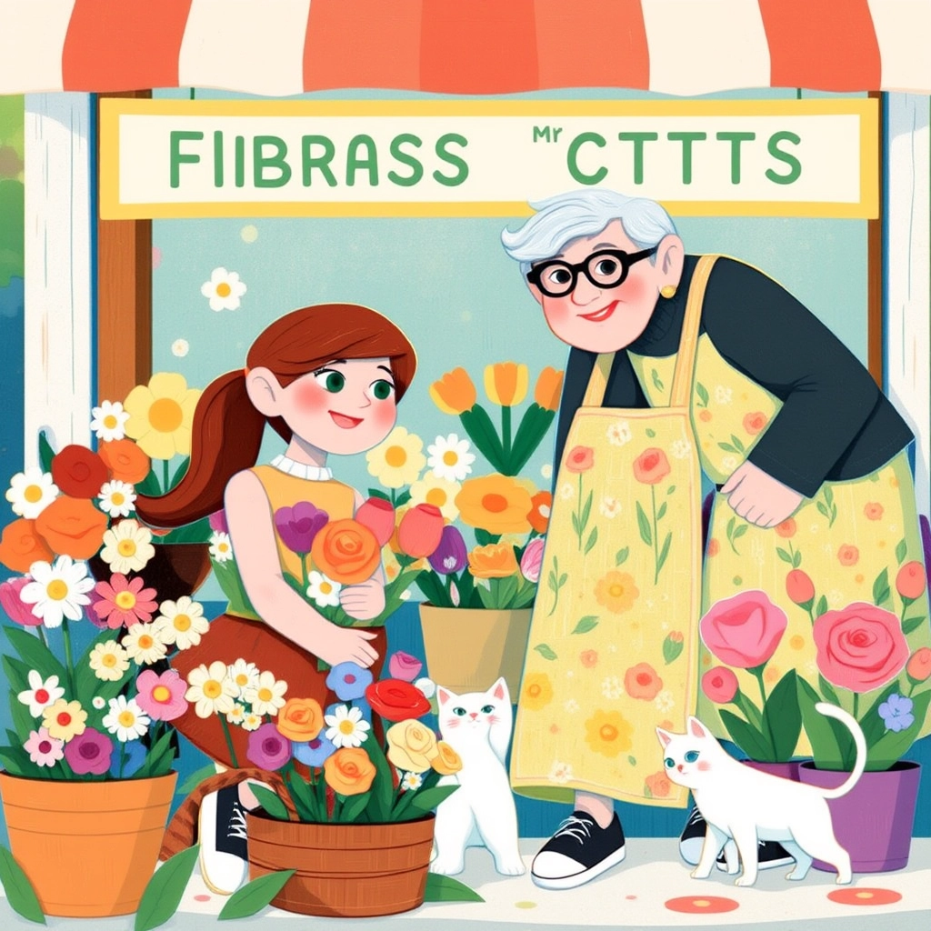 She decided to ask for help and found a warm-hearted woman named [Mrs. Fig](GF279GPG), who sold flowers. 'Don't worry, my dear. I'll help you!' she said with a kind smile.