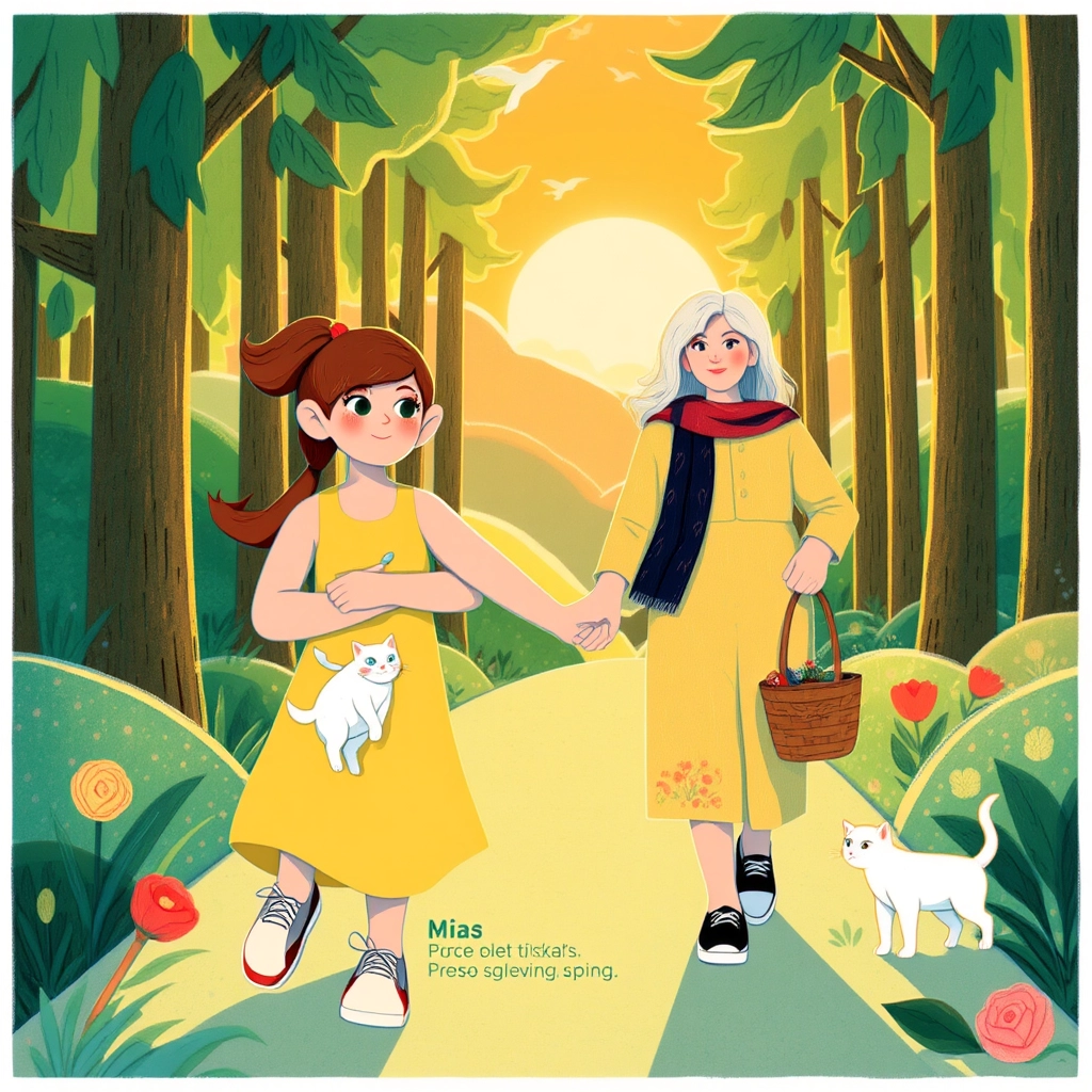 As they walked home, [Mia](V9S6PD7F) held her mom’s hand tightly. [Whiskers](4QTXLL3L) purred contentedly, while [Mia](V9S6PD7F) couldn’t wait to tell her dad about their market adventure.