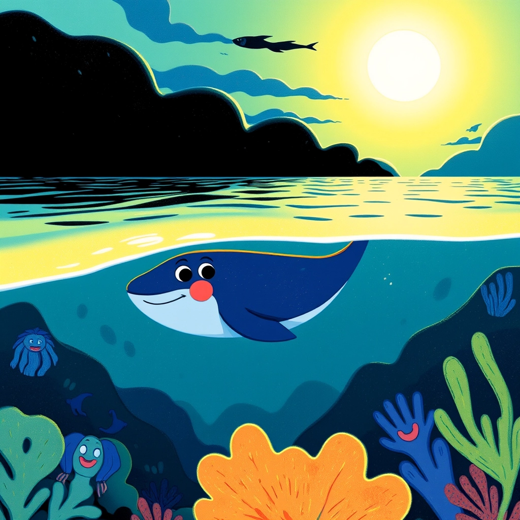 That night, Otto sat under a swaying seaweed tree, sketching starlight puzzles in his notebook. 'Sometimes, solving mysteries is better with friends,' he thought happily, watching as Luna and the dolphins put on a little underwater dance under the moonlight.