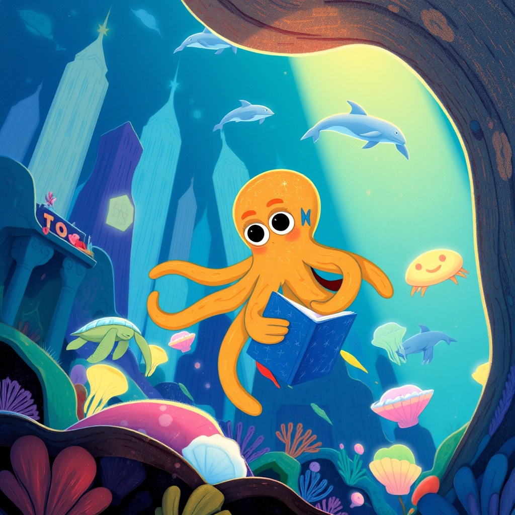 Deep beneath the shimmer of the waves, where the sun’s light fades, there existed a magical underwater world called Coralhaven. It was a bustling city built entirely of glowing coral towers, and its residents were unlike any you’ve seen on land—chatty sea turtles, laughing jellyfish, and clever dolphins. Among them lived [Otto the Octopus](3QKRQ4QL), a curious eight-armed explorer with a knack for solving puzzles and uncovering secrets.