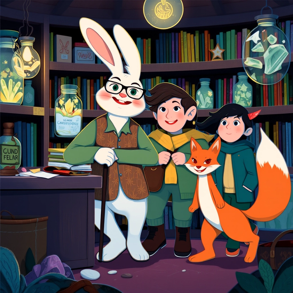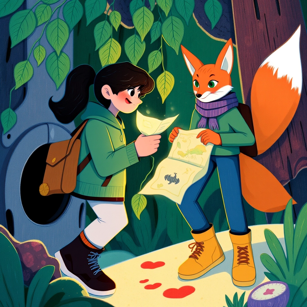 Suddenly, a curious child named [Mia](QZWLJ6HJ) and a clever fox named [Felix](6W49CPPF) burst into [Professor Whiskertail](M9DMZ4TR)’s study, eager to join the adventure.