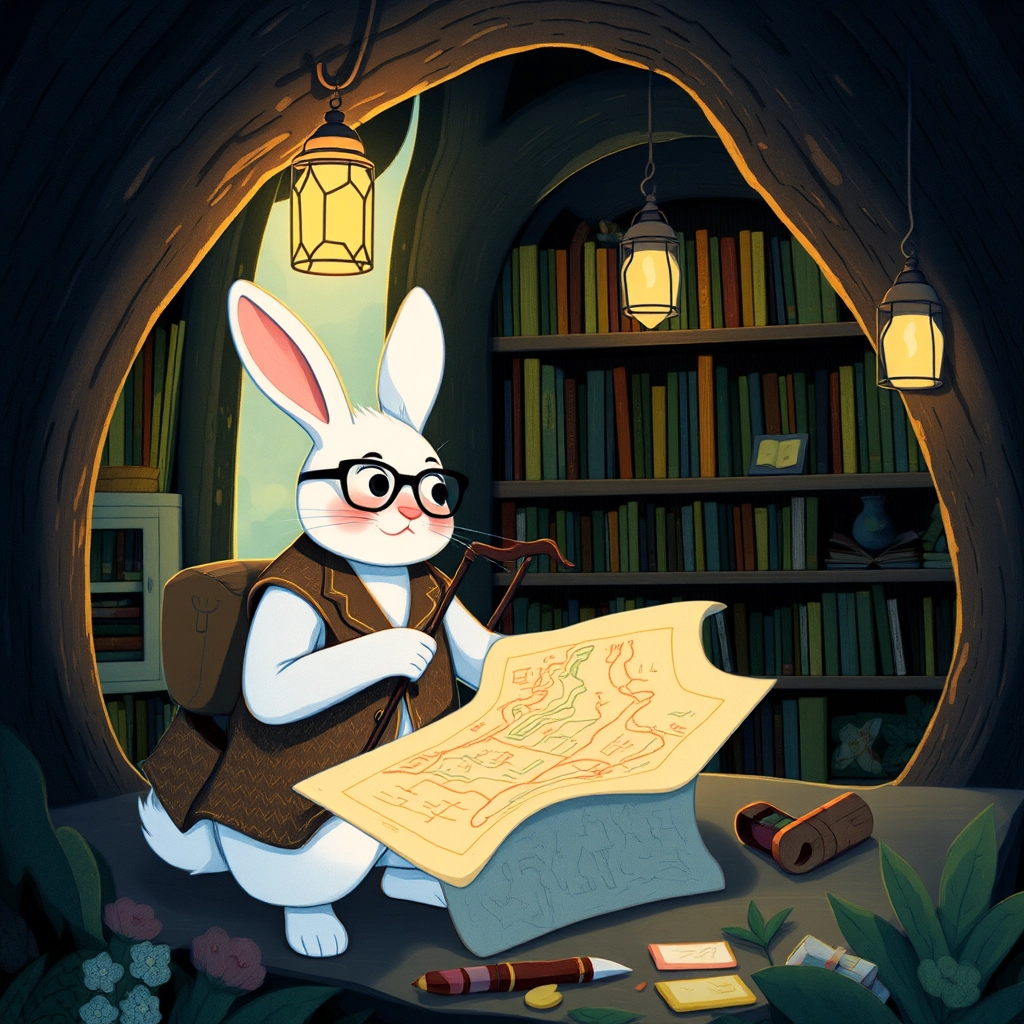 Deep in the heart of a magical forest, a wise rabbit named [Professor Whiskertail](M9DMZ4TR) was preparing a special map for an exciting journey.