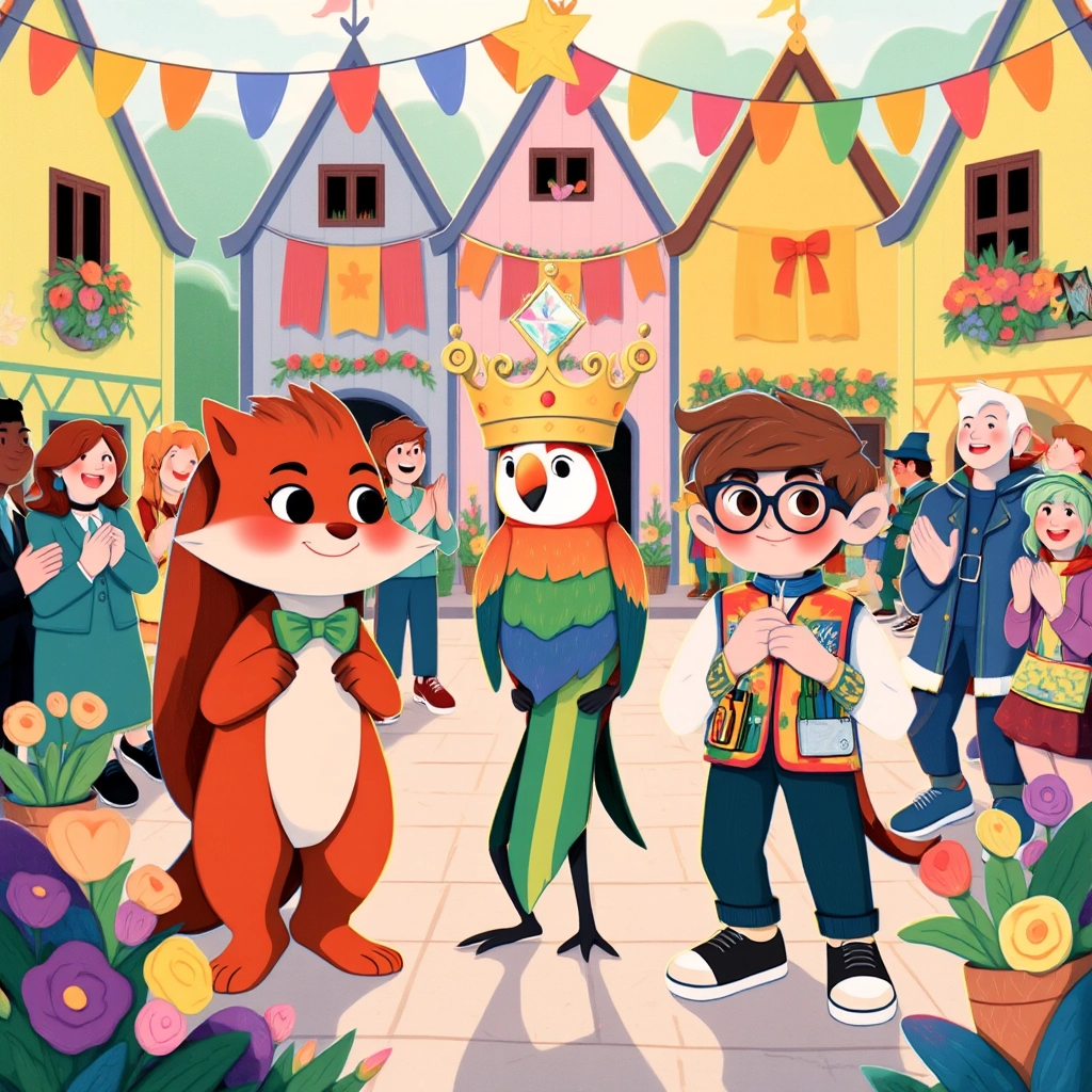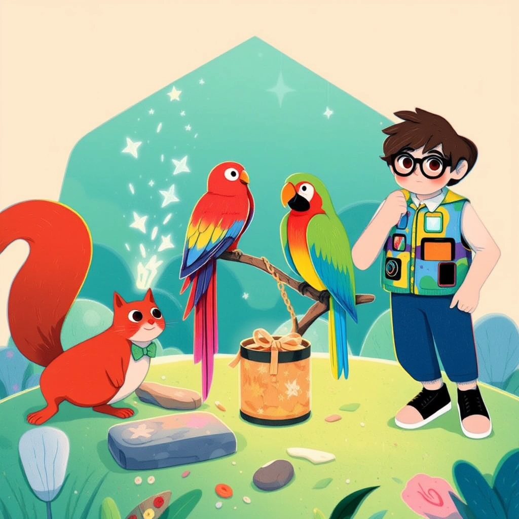 Among those gathered were [Max](ZB3JMKZB) the squirrel, who was always adventurous, [Penny](5KXR3WV5) the parrot with her bright feathers, and [Leo](M5BSYNWZ) the young inventor with his curious gadgets.