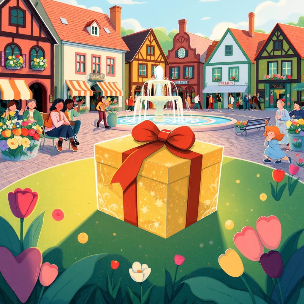 On a lovely day in April, the sun shone brightly, and the world seemed filled with magic. That was the day when a shimmering, giant gift box appeared in the middle of our small town square.