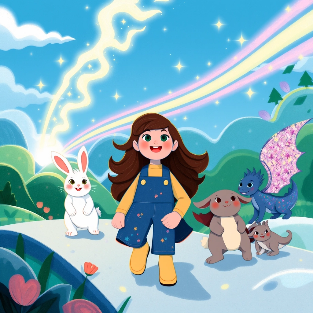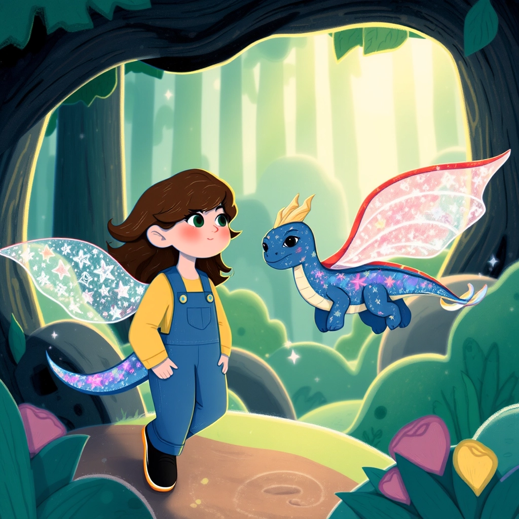 Out of the forest emerged [Nova](9Y63WK3X), her new sidekick. [Nova](9Y63WK3X) was a tiny, glittering dragon with gem-like scales and wings that looked like they were made of stars.