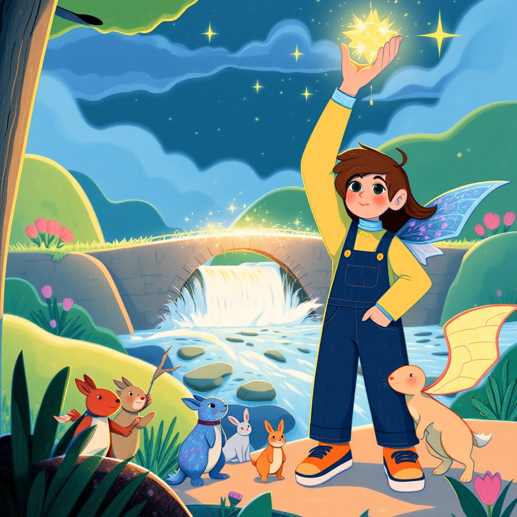 As [Lily](T62W4FK5) slipped the bracelet onto her wrist, a comfortable warmth spread through her arm. Suddenly, the room sparkled, and she found herself standing in a vibrant, magical forest!