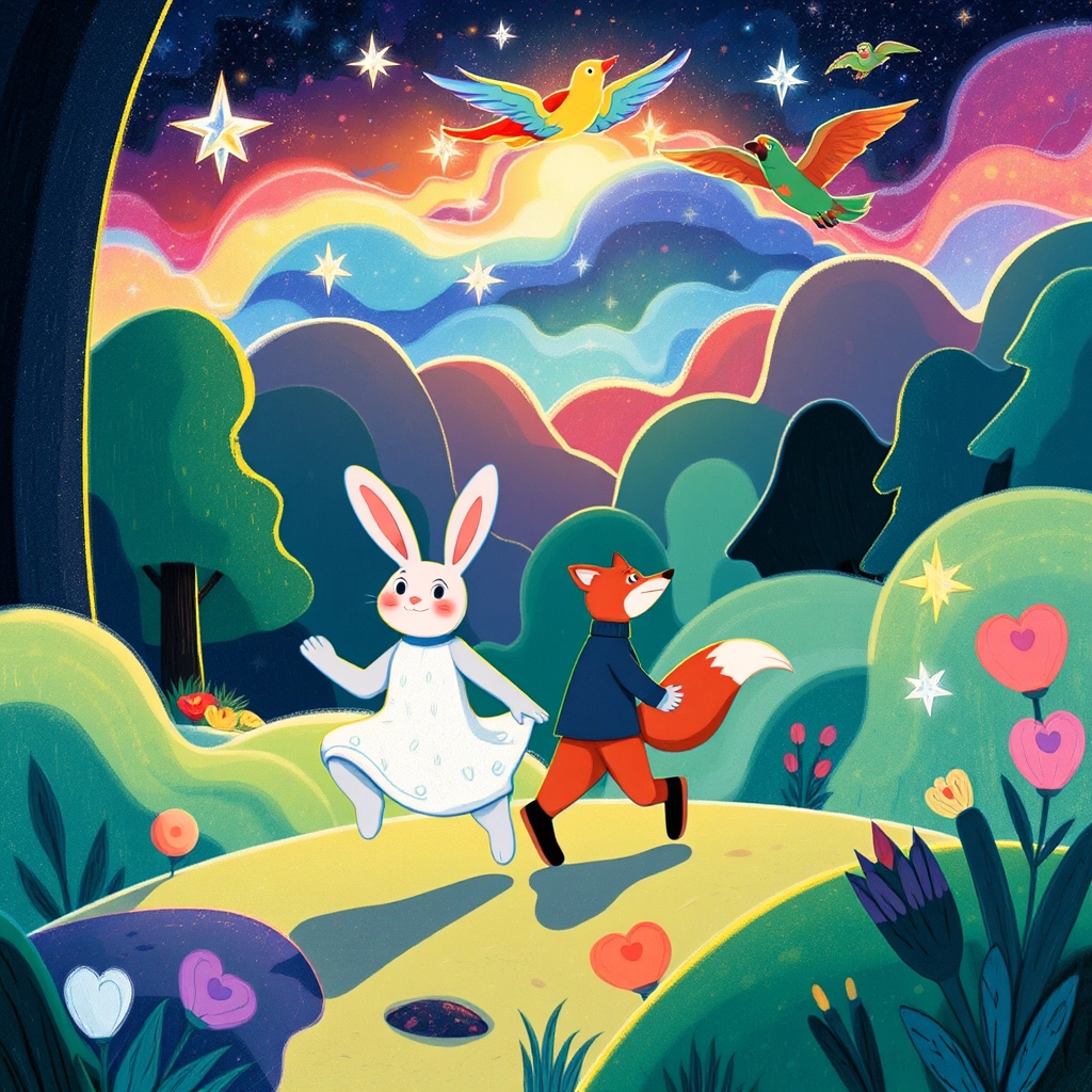 Once upon a time, in a magical forest filled with sparkling streams and glowing plants, there lived a rabbit named [Binky](YZ7KDL9V), a fox named [Flora](YW2LT9D6), and a parrot named [Chase](YRF9L36B). They were the best of friends and loved to explore the wonders of their forest.