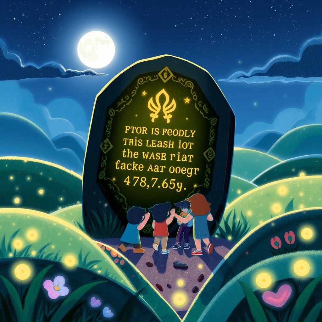Next, they arrived at the Twinkling Meadow, where the fields glowed under the moonlight. The meadow was filled with dancing fireflies and a mysterious puzzle stone that blocked their way.