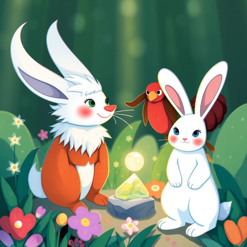 In the Meadow of Echoes, they met [Raff](B5J9R3FT) the talking rabbit, who granted them wisdom and a clue for the next puzzle after they helped him untangle his long, soft ears.