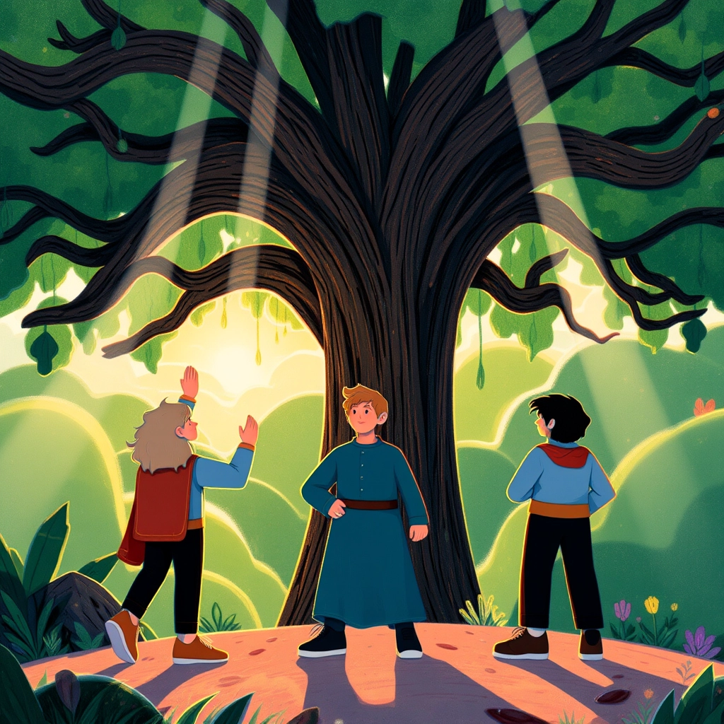 At the heart of the forest stood the grand Oak of Eternity, its trunk etched with glowing runes. A golden key floated in its hollow, waiting for the bravest adventurers.