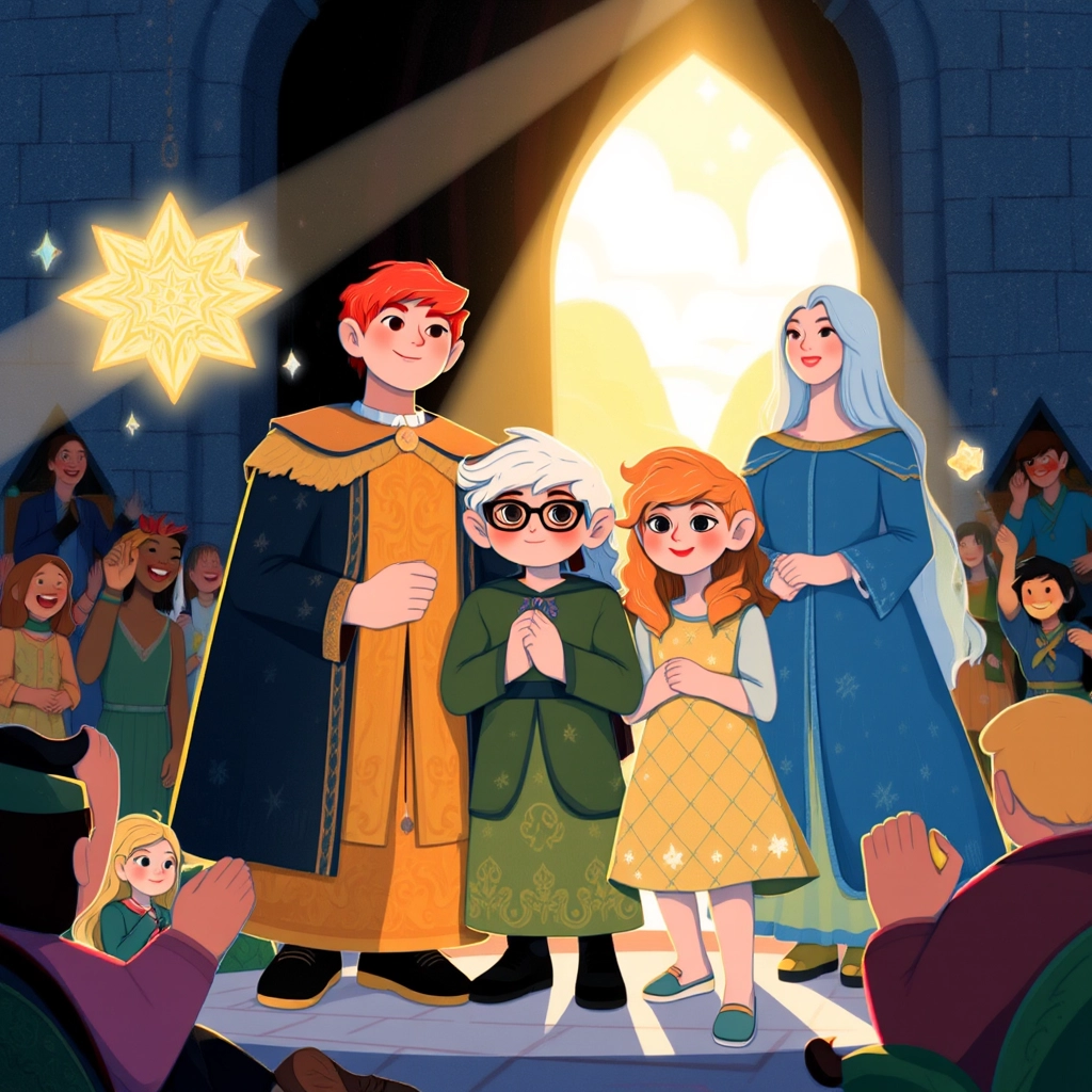 They returned to the castle as heroes, their parents beaming with pride. From that day on, [Elias](FR25229Q), [Mira](V9P7PPTS), and [Lyra](N5SHQQTR) embraced their roles as protectors of the kingdom, ready for the adventures to come!