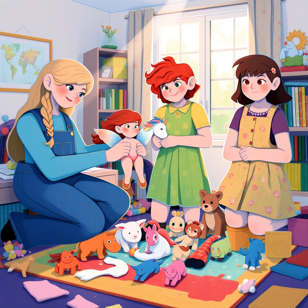 Once upon a time, there were three sisters—[Emma](M3H4B9QT), [Chloe](RCXRZDV2), and [Lily](MZTXVXW6)—who spent their summers creating magical worlds with fairies, unicorns, and their beloved collection of stuffed animals and dolls.