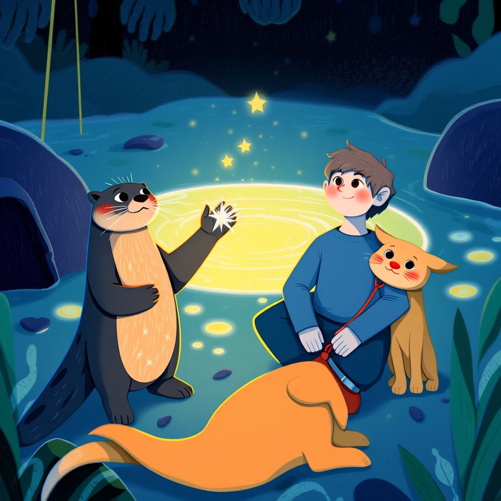 Suddenly, the surface of the pond rippled, and a tiny sparkling otter popped out. "Hello, travelers!" said the otter, with eyes that twinkled like stars. "I'm [Ollie](BCZF62PB), the guardian of the pond. What brings you here?"