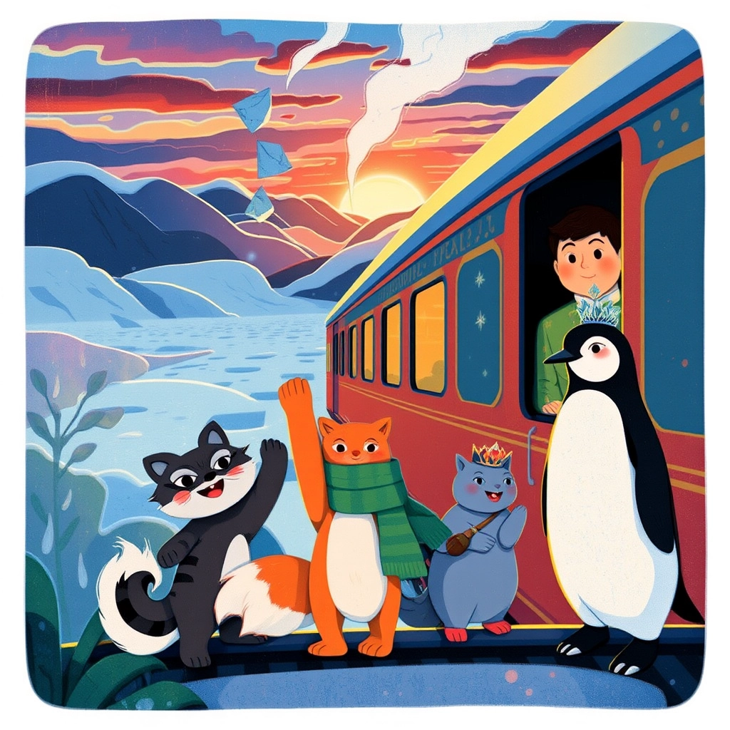 After a wonderful visit, the friends returned to the train, filled with joy and new memories, ready for the next magical destination.
