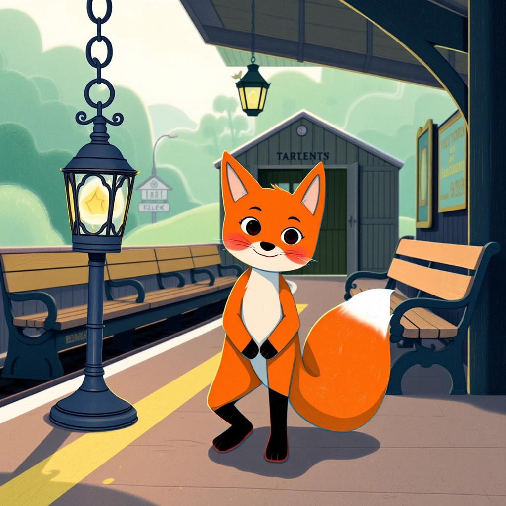 Inside the station, a curious little fox named [Felix](KCFZJ7XJ) was peering down the tracks, his furry ears twitching with excitement.