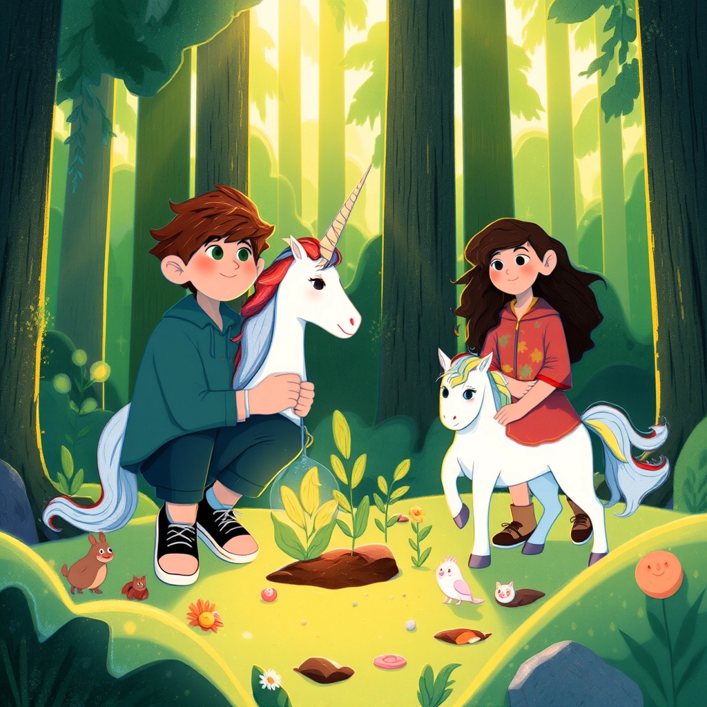 As they walked further, a mystical velvet-colored unicorn named [Starlina](TXRBS3PT) greeted them. Her kind eyes sparkled as she explained how people could help forests by planting trees and not cutting them down unnecessarily.