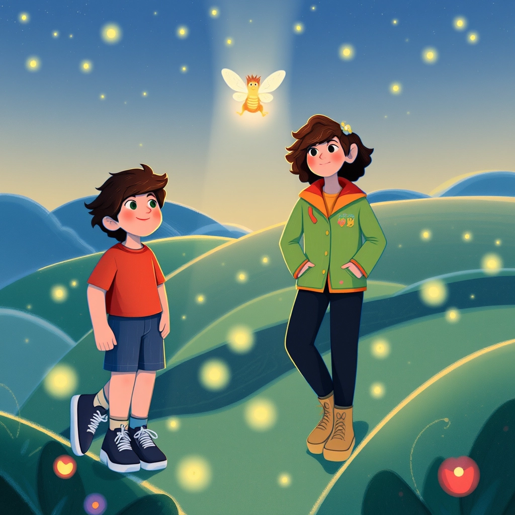Entering a meadow filled with fluttering creatures, they came across [Lumi](JFXGLGXX) the firefly, who taught them that even the smallest light can brighten the darkest night.