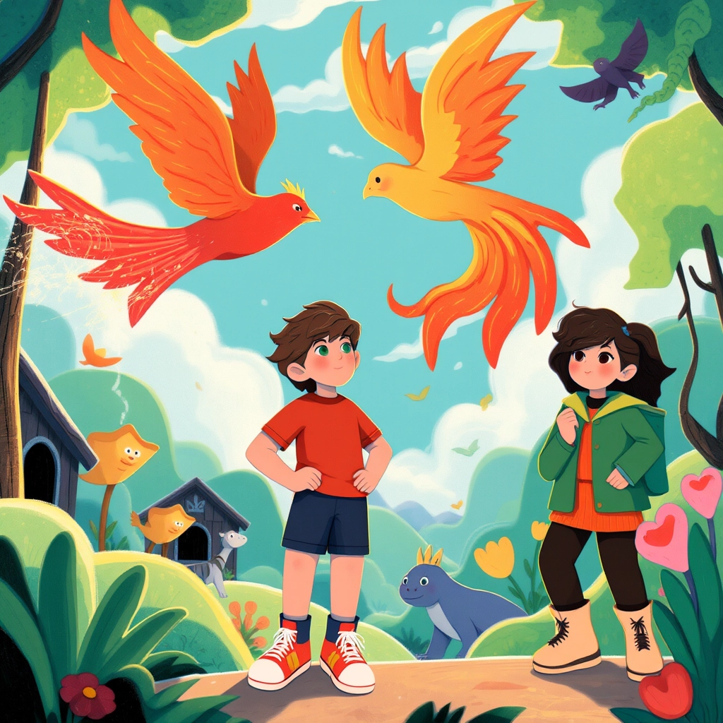 As they stepped through the gate, the air sparkled, and they found themselves in a dazzling zoo filled with enchanted creatures. A phoenix with fiery feathers swooped over their heads.