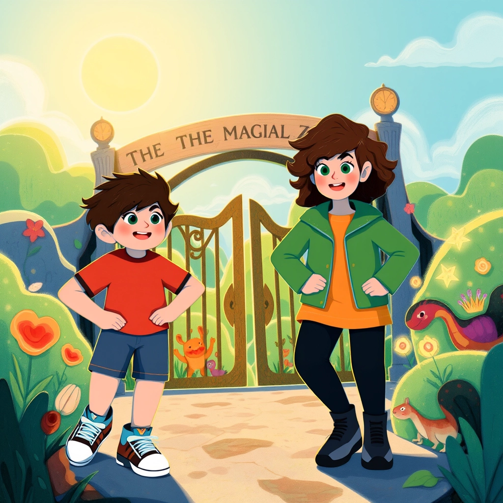 [Ben](TW5Z2WK4) and [Emory](BQTW9327) stood outside the Magical Zoo, its golden vine gates sparkling in the sun. A sign nearby promised secrets beyond their wildest dreams.