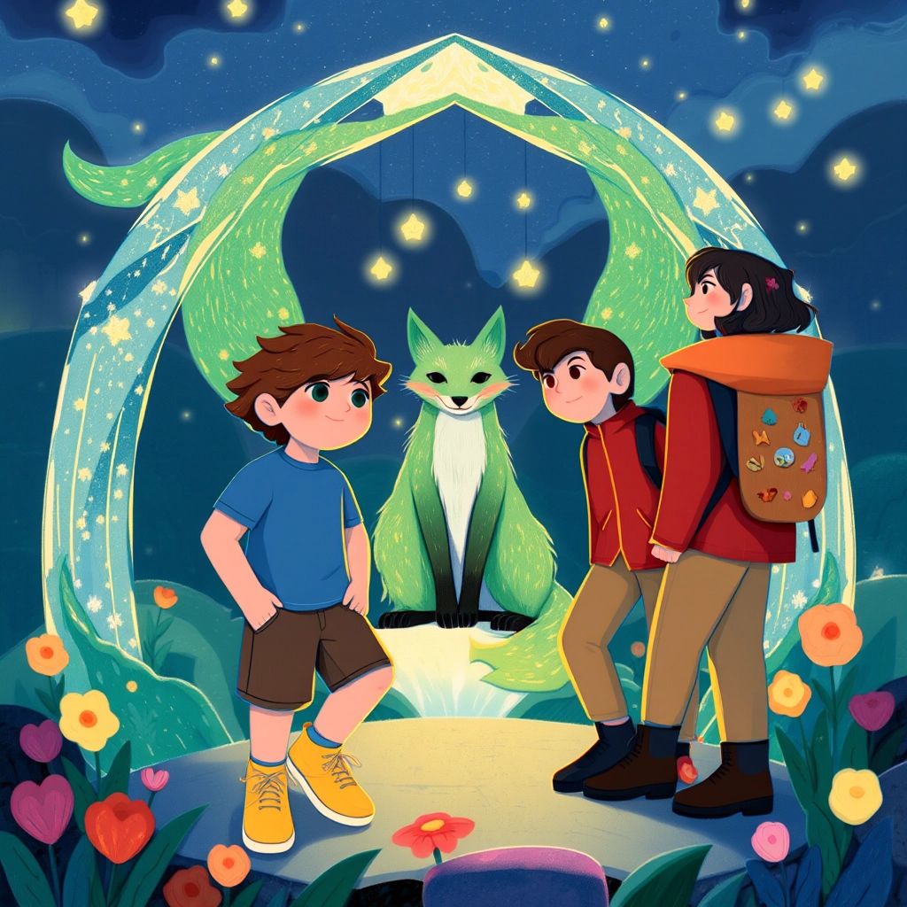 Under a crystal arch, they met a fox with emerald-green fur and tails sparkling like stars. 'Be curious and kind,' it said, 'for every corner of this zoo holds a new story to tell.'
