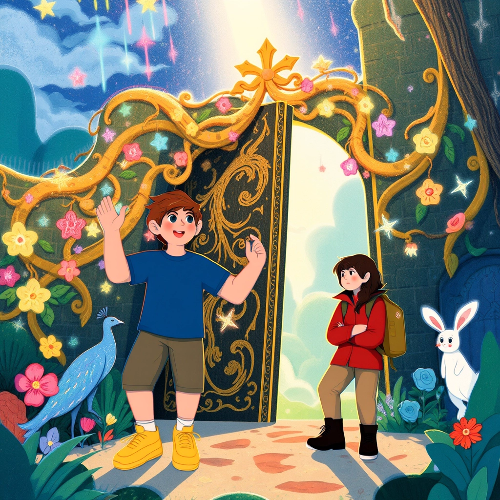 The golden trail led them to the entrance of the magical zoo—a grand gate made of golden vines with glowing flowers. As [Ben](TW5Z2WK4) pushed the gate open, the world burst into life with shimmering colors and fantastical creatures.