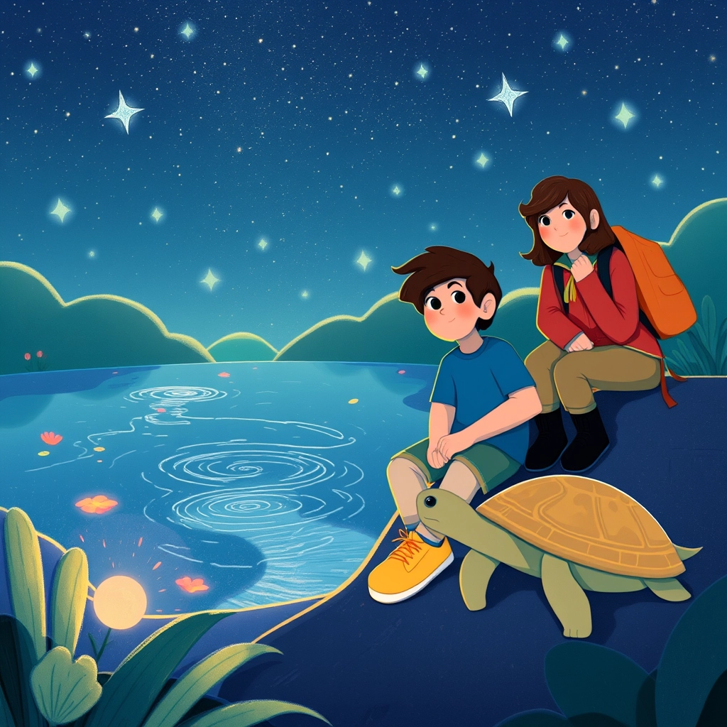 After exploring the magical zoo, [Ben](TW5Z2WK4) and [Emory](BQTW9327) sat down beside [Kai](KPVMXNTR) at the Glimmer Pond. The water reflected the constellations in the sky. 'This place is truly enchanting,' [Ben](TW5Z2WK4) said with a smile.