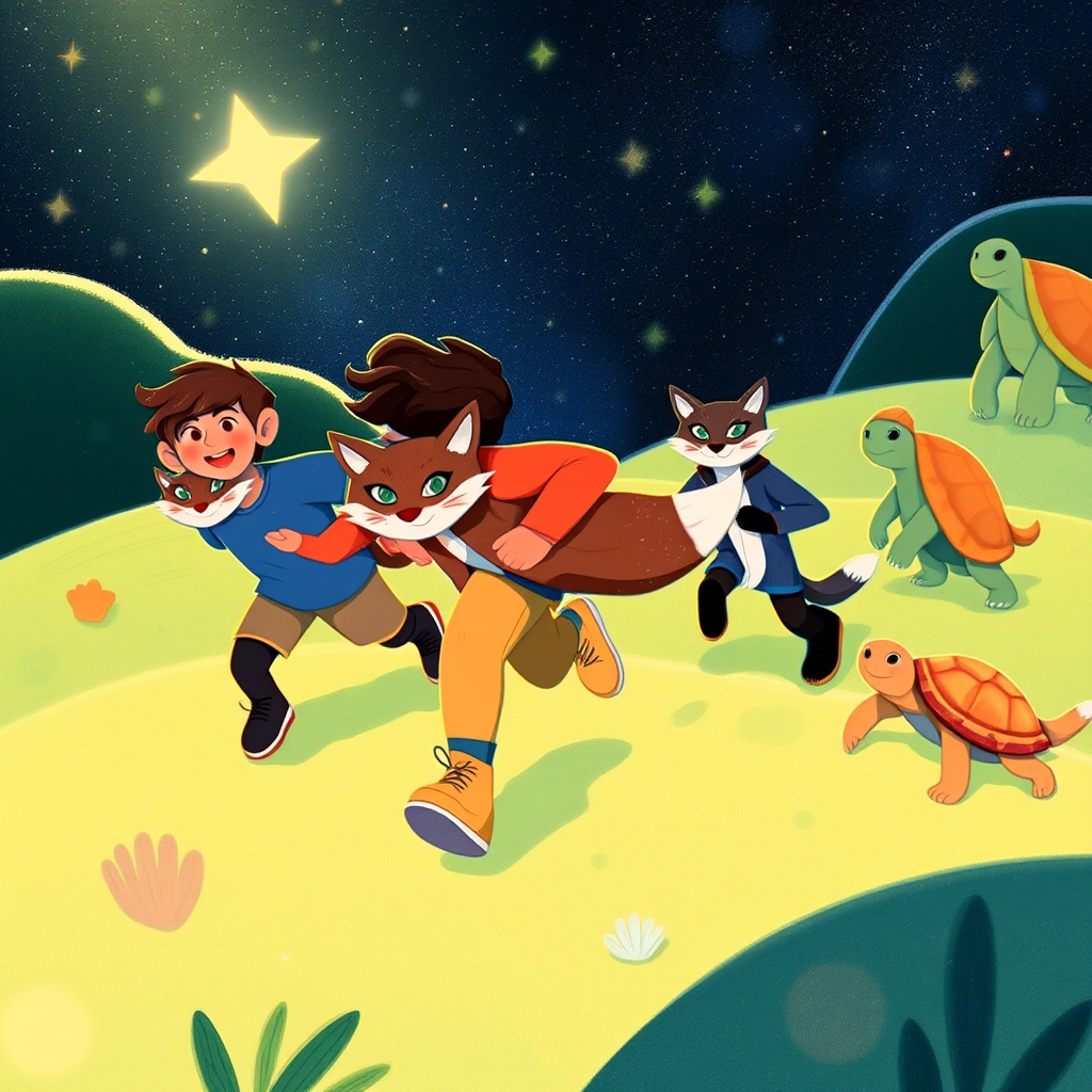 [Emory](BQTW9327) stopped to admire the Starry Foxes that left trails of stardust as they moved. 'Can we play with them?' she asked. 'Of course,' [Kai](KPVMXNTR) replied, and soon they were laughing and chasing the playful foxes.