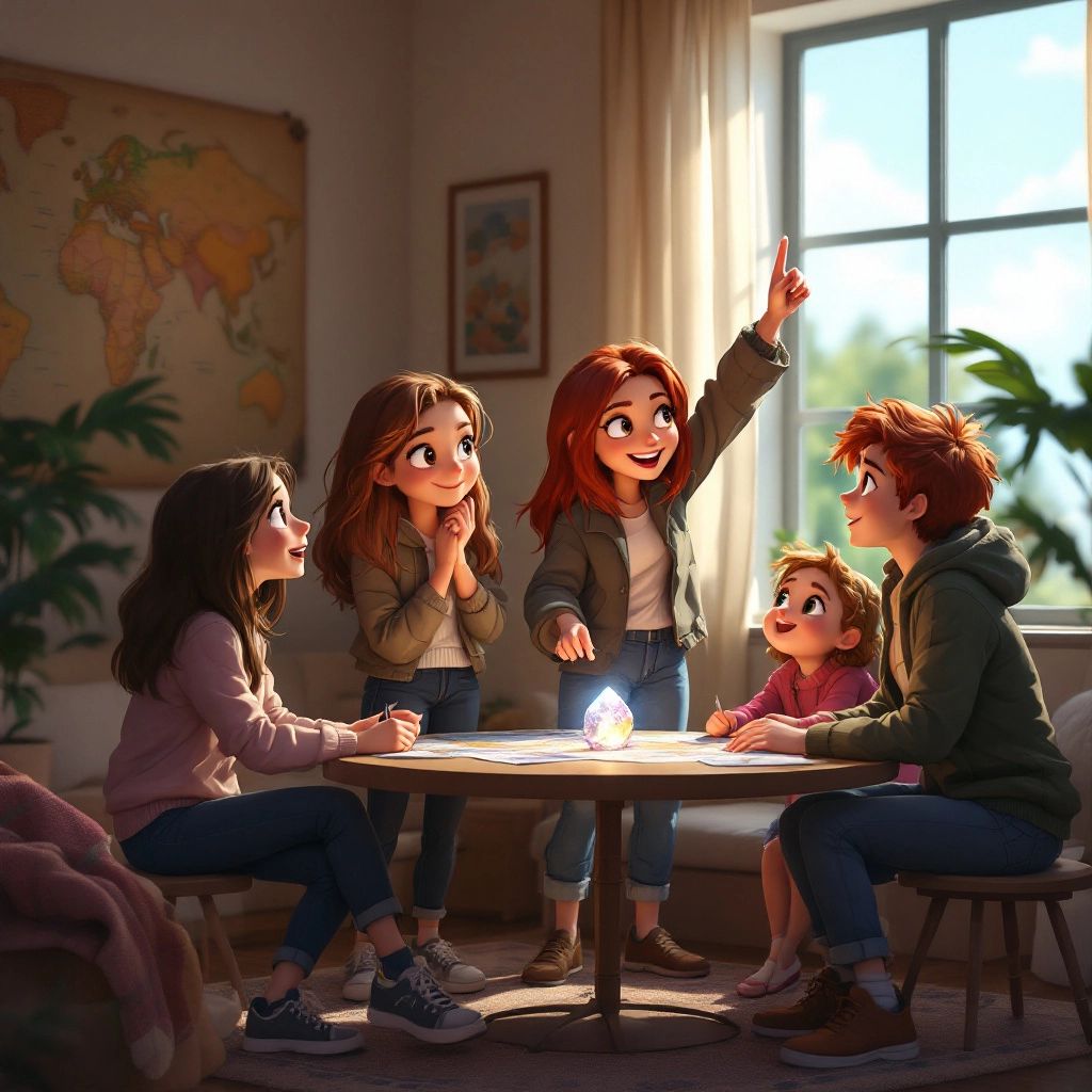 Back home, they gathered at [Gemma](PD3KH335)’s house to look at the moonstone, dreaming of their next adventure. “Who knows where we’ll go next?” said [Gemma](PD3KH335), smiling. “The stars are the limit!”